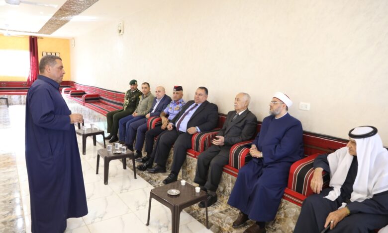ففي منطقة الحمرا بمحافظة المفرق، قدّم العيسوي واجب العزاء بوفاة النقيب حرس الحدود منذر عبدالله الدليجم الخالدي، نجل العميد الركن المتقاعد علي عبدالله الخالدي، ناقلاً تعازي الملك وولي العهد إلى ذوي الفقيد وعشائر بني خالد، سائلاً الله أن يتغمده بواسع رحمته.